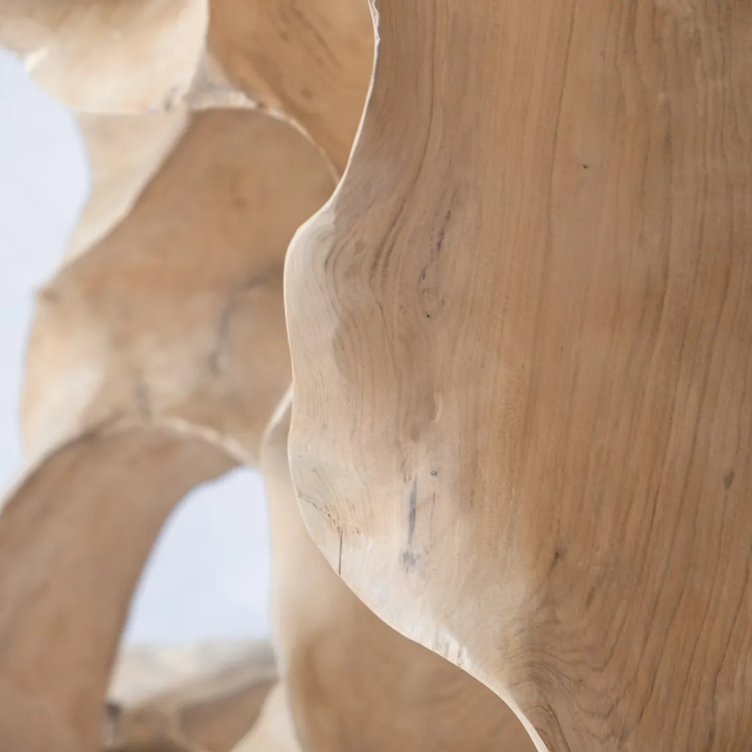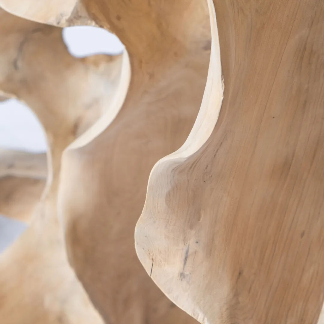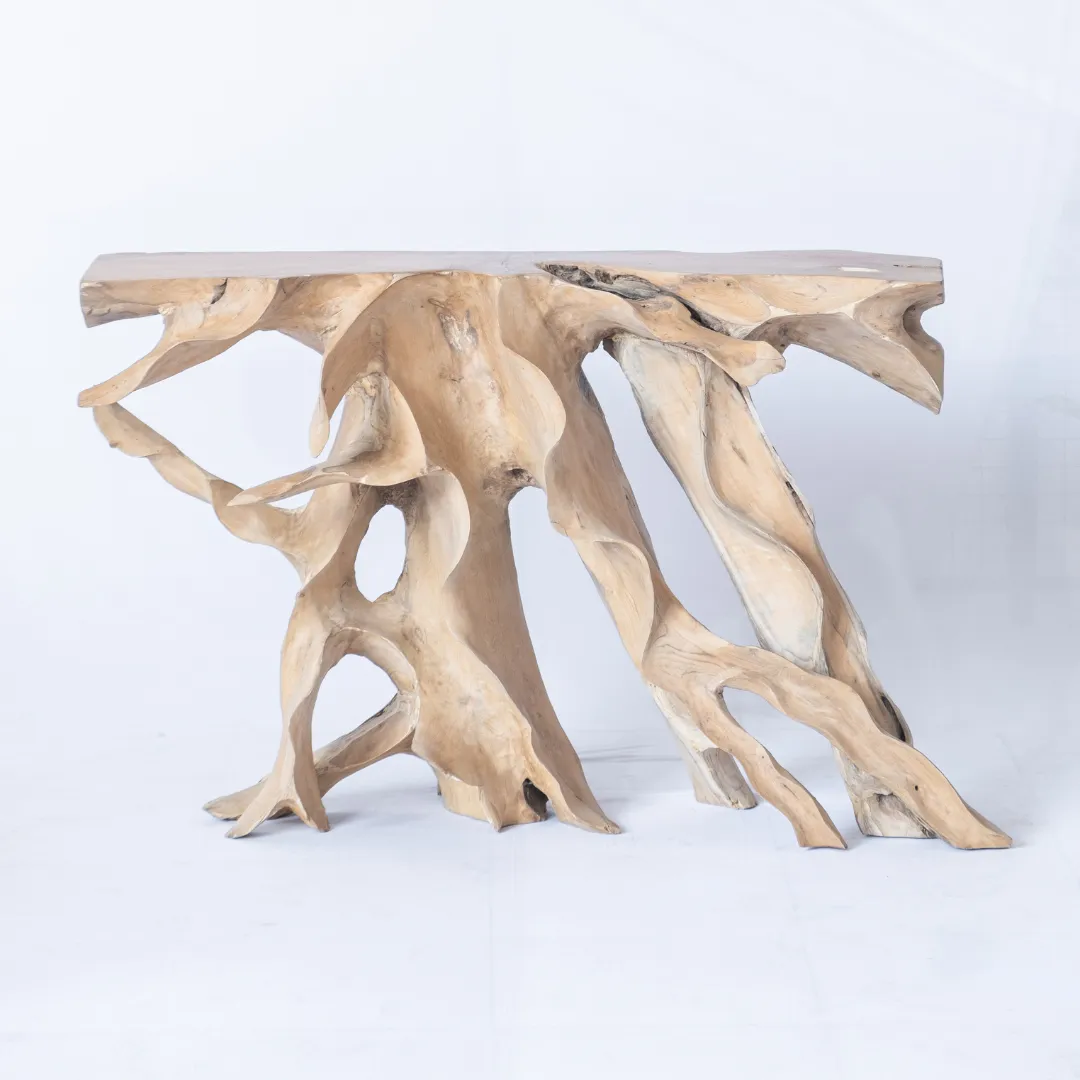 Aparador confeccionado con raíz de teka esculpida y pulida manualmente. Piezas únicas.