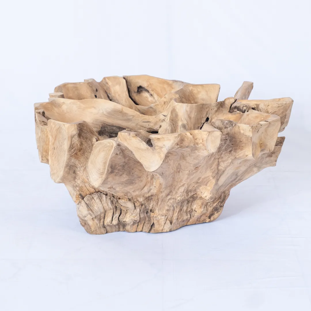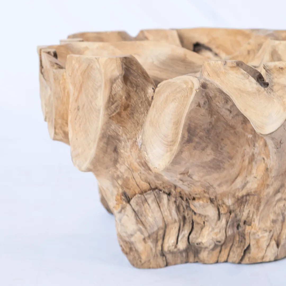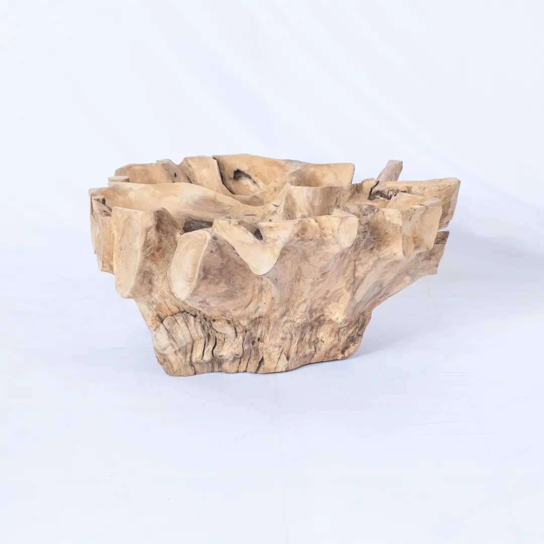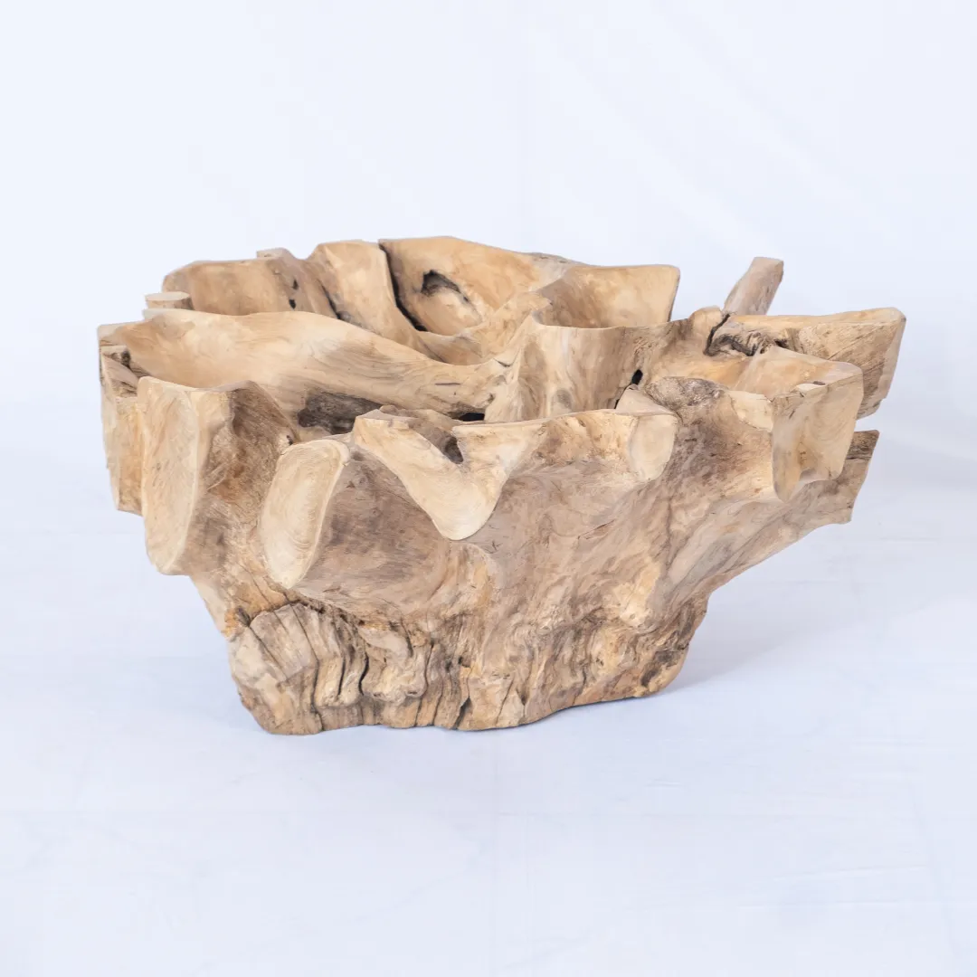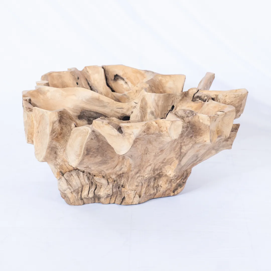 Base de mesa de centro o auxiliar hecha con raíz de teka esculpida y pulida manualmente. Se recomienda colocar tapa de vidrio de 1m 0 1,20 mts. La tapa de la mesa no esta incluida. Piezas únicas.