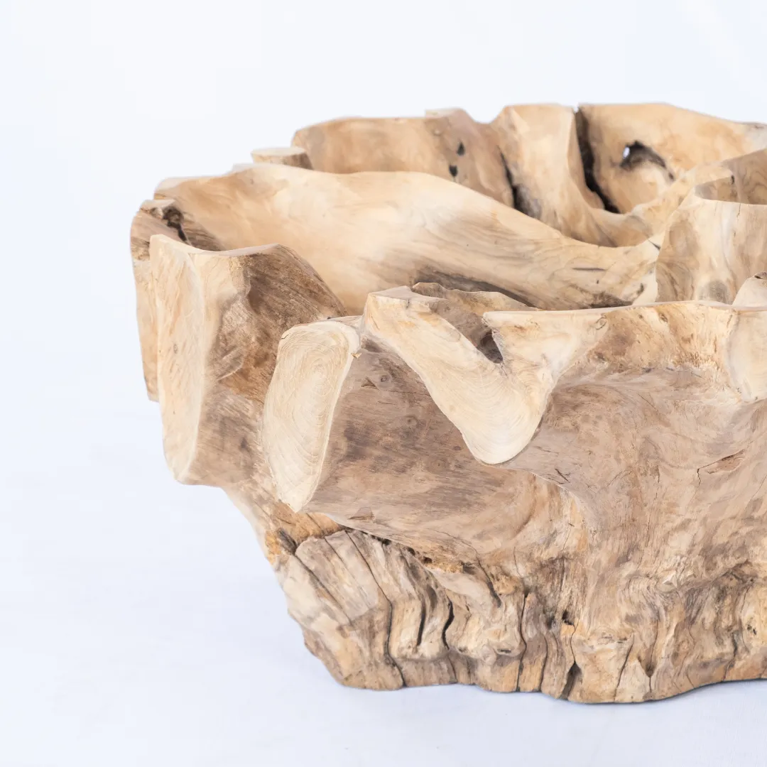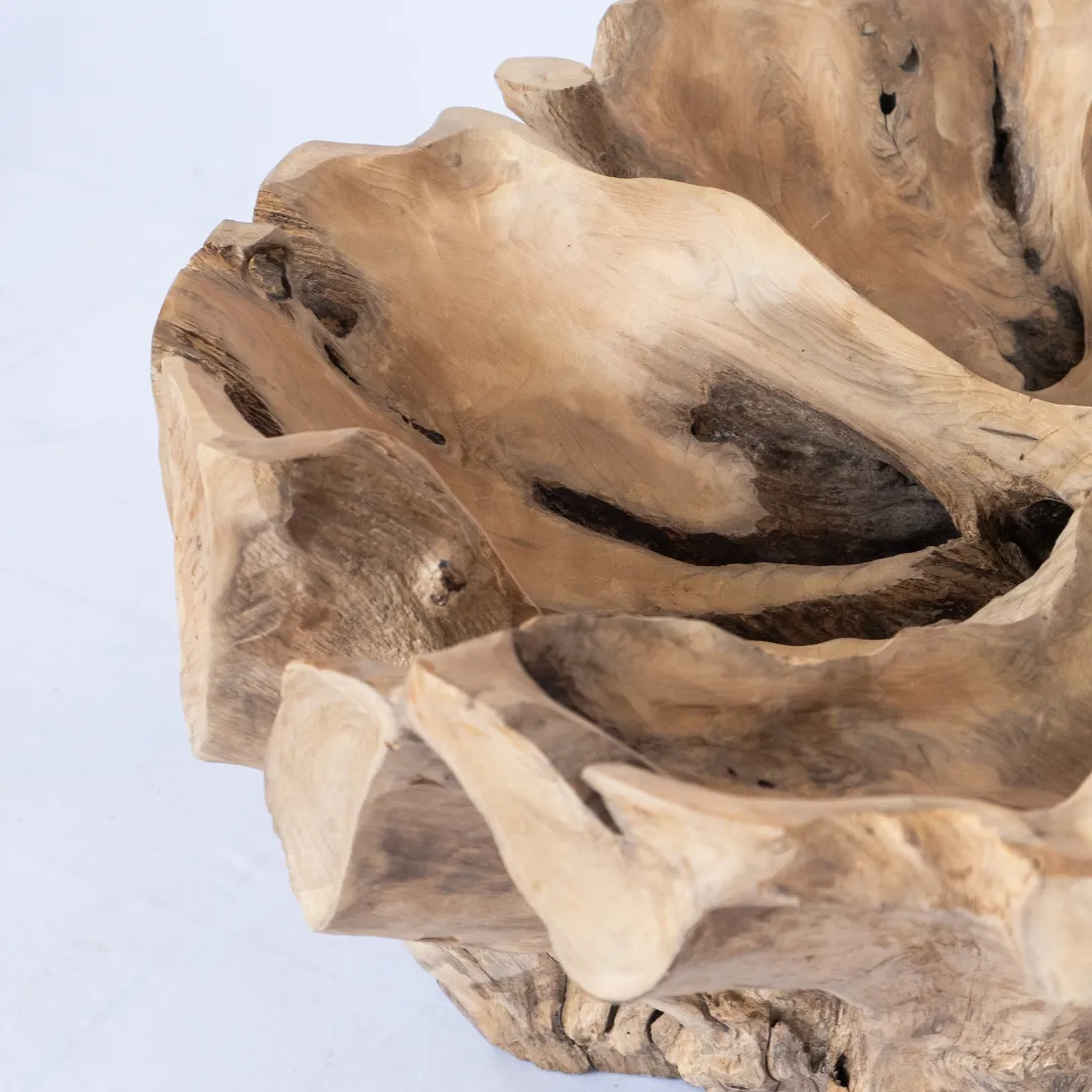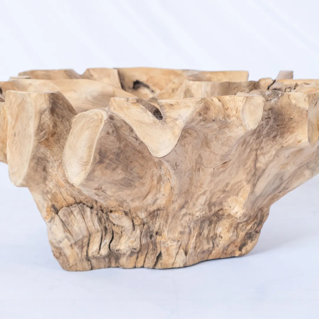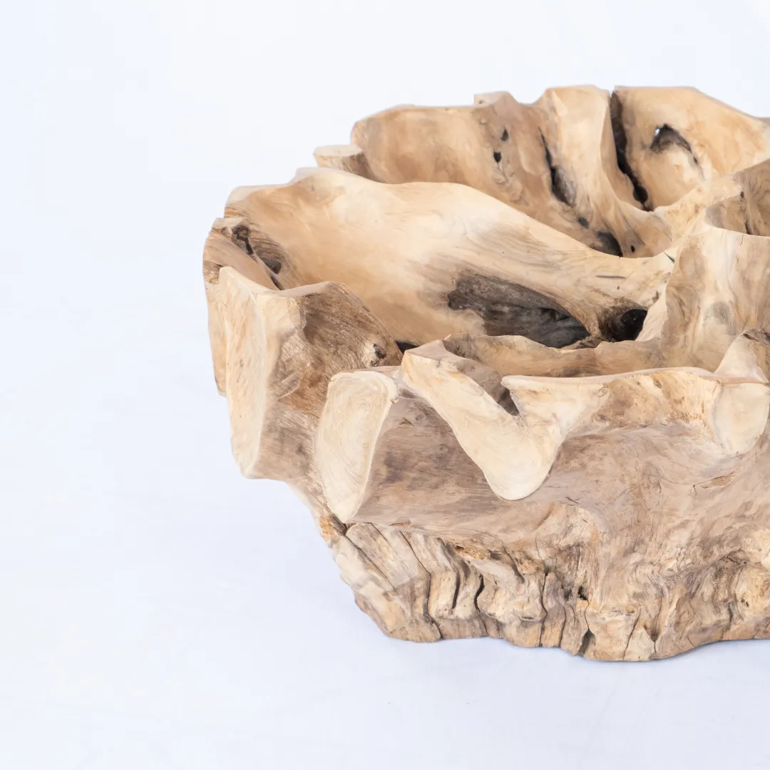 Base de mesa de centro o auxiliar hecha con raíz de teka esculpida y pulida manualmente. Se recomienda colocar tapa de vidrio de 1m 0 1,20 mts. La tapa de la mesa no esta incluida. Piezas únicas.